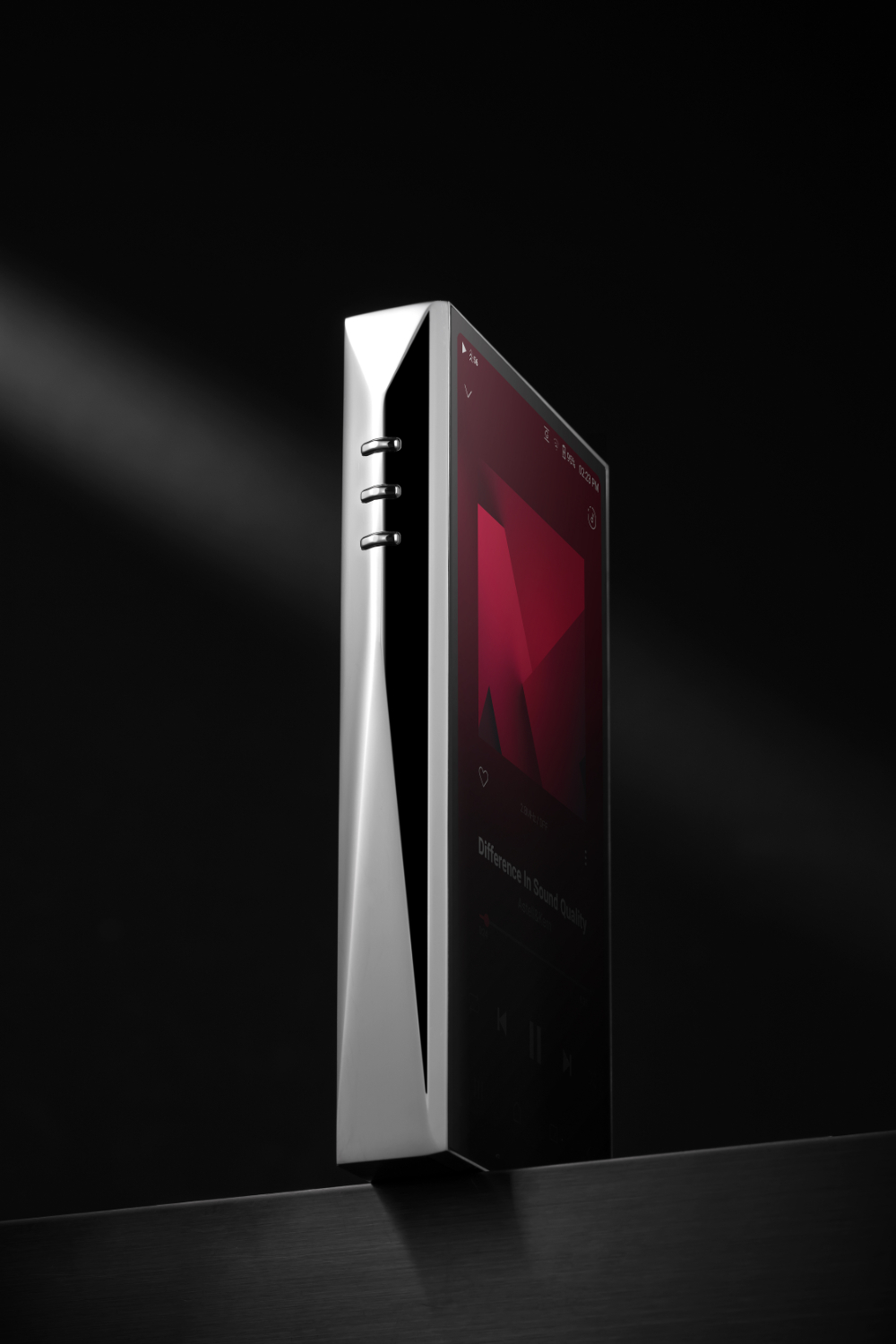 SP4000のデザインコンセプトは「闇を貫く光の力」です。Astell&KernのフラッグシップラインA&ultimaの頂点に立つSP4000は、性能とデザインの頂点を体現するデジタルオーディオプレーヤーです。暗闇を突き抜ける光の力のように、回転するボリュームホイールは、強固な壁を突き破る破片のように可視化されたエネルギーを生み出します。このイメージは、シャープなエッジ、抑制されたディテール、幾何学的な構造によって捉えられ、爆発的な力と凝縮されたパワーの両方を表現しています。対照的な表面と多次元的なフォルムの相互作用は、美観にとどまらず、SP4000の高性能オーディオの能力を視覚的に表現しています。また、ボリュームホイールの柄の角度にもこだわり、微妙な触感の抵抗感を与えることで、ユーザーと音そのものをつなぐ感覚的な体験を提供します。単にコントロールするだけでなく、音楽との直感的で感情的なインタラクションを実現します。SP4000の素材の選択は、テクノロジーと感情の両方を体現しています。フロントは光沢のあるポリッシュ仕上げのStainless Steel 904L、リアはPVDコーティングのセラミックで仕上げられ、フォルムと機能の両面で卓越したクラフトマンシップを実現しています。SP4000は単なるデジタルオーディオプレーヤーではなく、テクノロジー、デザイン、直感、そしてパフォーマンスが融合した芸術作品であり、究極のサウンド体験に対する純粋な情熱を表現しています。