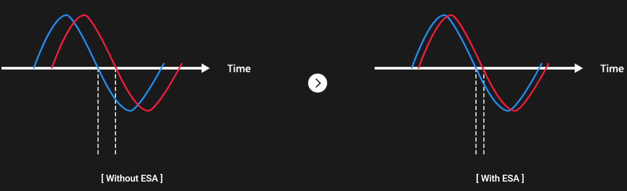 SP4000は、独自のESA(Enhanced Signal Alignment)テクノロジーを搭載し、オーディオの長年の課題の一つである群遅延を大幅に改善しました。オーディオにおける群遅延とは、各周波数が内部システムを通過するのにかかる時間差を指し、オーディオ信号内の異なる周波数が同時に到達せず、わずかな遅延が生じる現象のことを指します。ESAテクノロジーは、周波数信号をより均一に整列させ、周波数歪みを最小限に抑え、音の明瞭度と純度を向上させます。