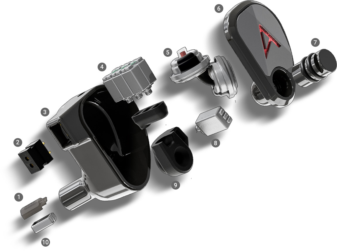 中域と中高域はそれぞれ6基と1基のBAドライバーにより駆動され、滑らかで豊かな質感を実現。ボーカルや楽器、そしてそれらの独特な倍音のディテールが温かみと明瞭さを帯びて再現され、サウンドステージ内に自然でバランスの取れた空間感を生み出します。