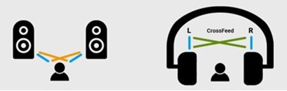 左右のチャンネルが明確に分離したヘッドホン環境では、長時間のリスニングで耳の疲れが増すことがあります。クロスフィードは、片方のチャンネルのオリジナル信号の一部をミックスし、その信号を時間差で反対側のチャンネルに送り、音像を中央に定位させる機能です。これによりスピーカーで聴くような自然なサウンドを可能にします。シェルフカットオフ、シェルフゲイン、ミキサーレベルなどの詳細設定により、リスナーの好みに応じたクロスフィードレベルを設定することができます。※クロスフィードは192kHz/24bit以下のPCMフォーマットにのみ対応しています。