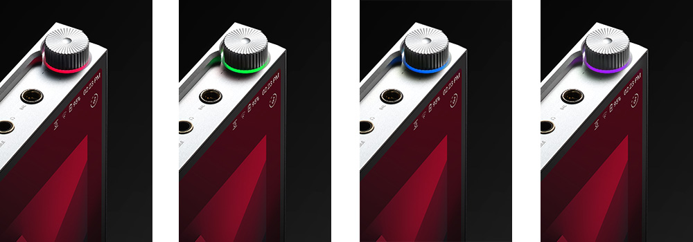 電源ボタンを囲むLEDライトは、再生中の曲のビット深度情報を表示するほか、光り輝くことで視覚的なアクセントにもなっています。* LEDライトはユーザー設定によりON/OFFが可能です。